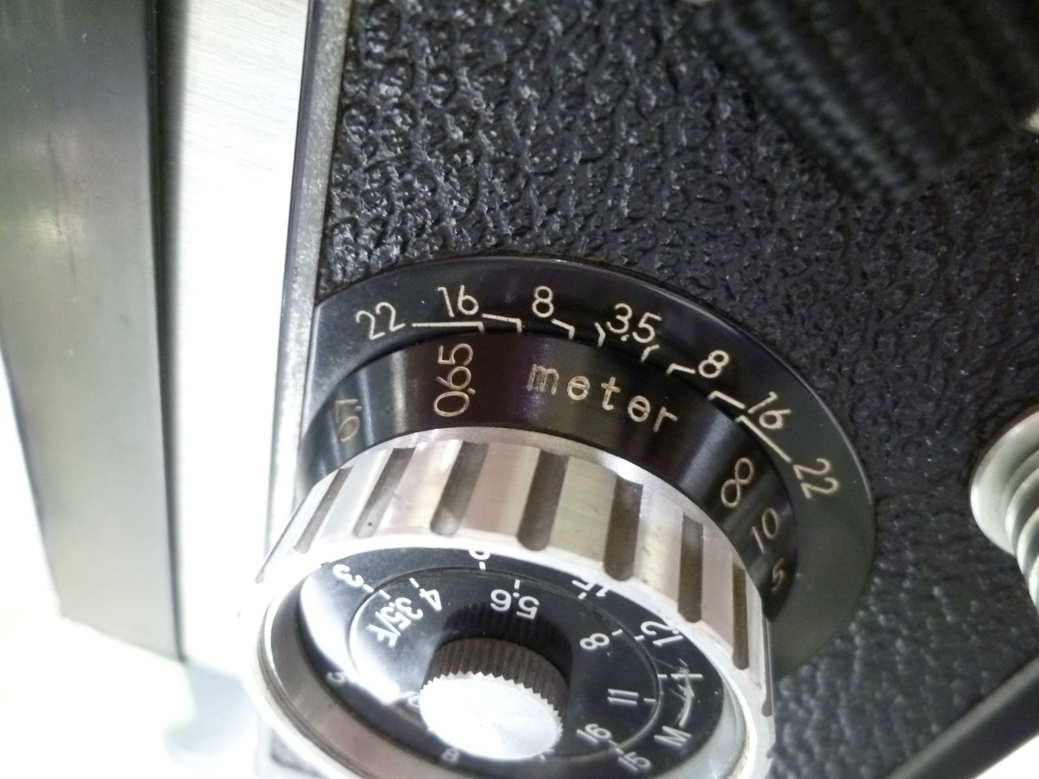 国内版「プリモフレックス オートマット」ではクランク基部に露出早見表が付いていましたが、この個体には剥がれてしまったのか元からなのか無かったです。