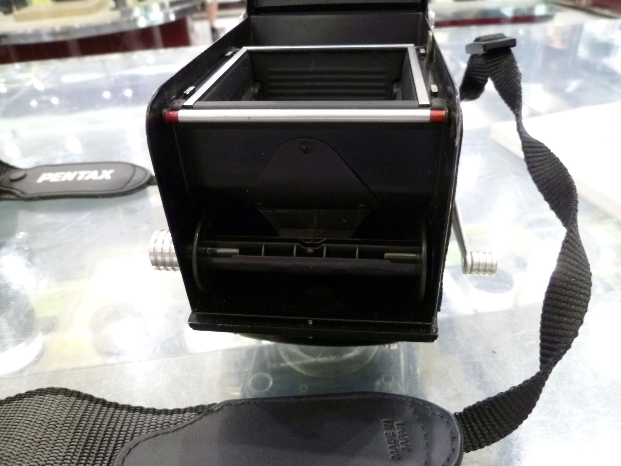 一般的なモデルはフィルムは下から上に巻き上げていますが、この機種は平面性向上を目指し逆の上から下に巻き取っていくスタイルです。