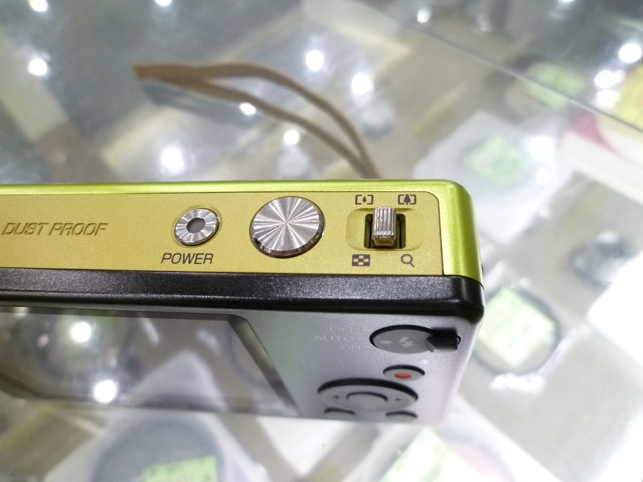 上部の画像です。電源、シャッター、ズームレバーのみとなっていて直感的に操作できるUIです。