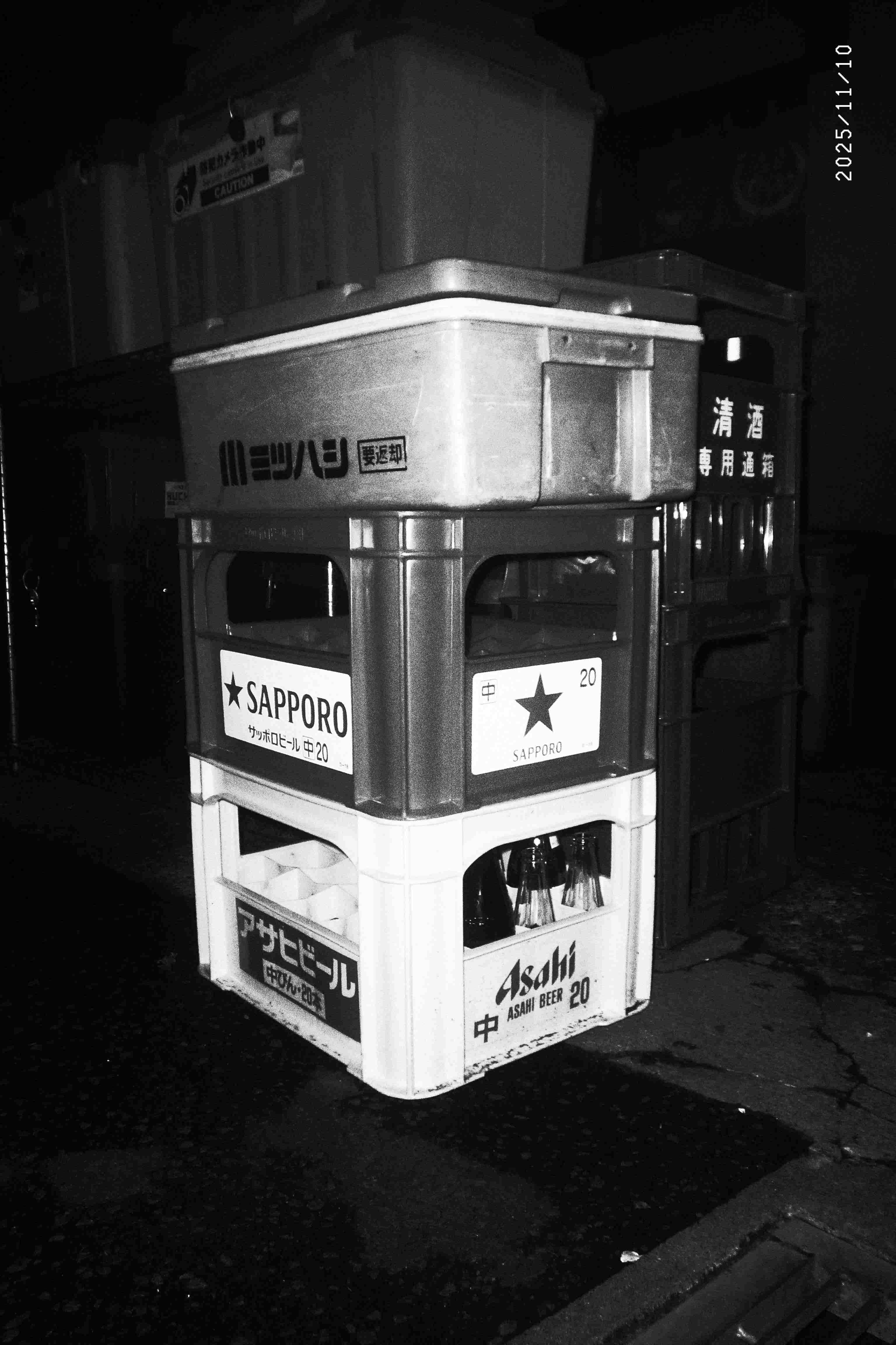 調子に乗って、夜間フラッシュ撮影も試してみました。フィルムカメラのようなモノクロ写真ぽくなったかと思います。